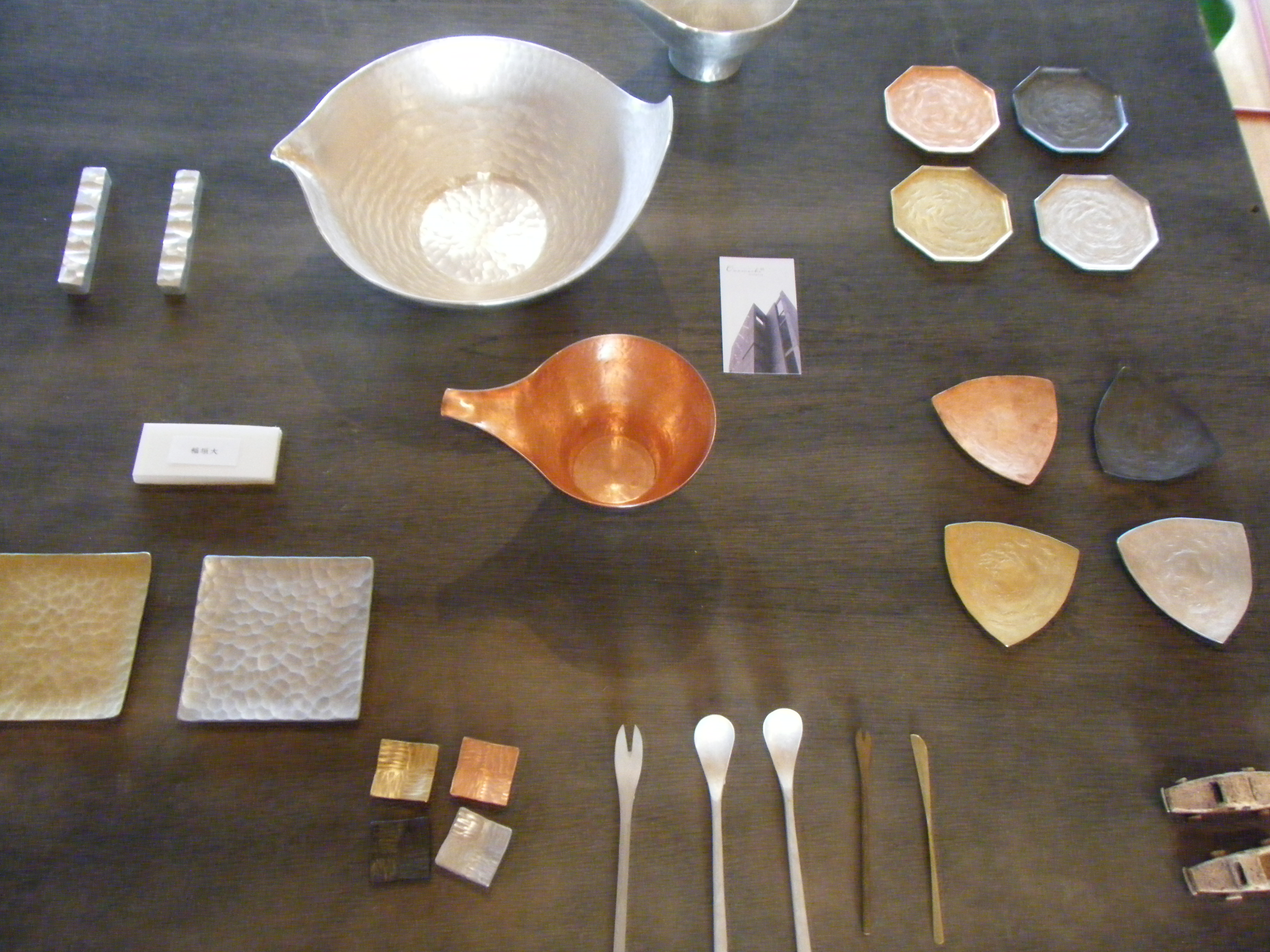 DSCF5874 鍛金家・稲垣大さんのランプシェードは静かに”責め”る存在感。 DSCF5873 酒器や小皿、小粋なカトラリーの面々は自分用にも贈り物にも「え!」とくすぐられる。