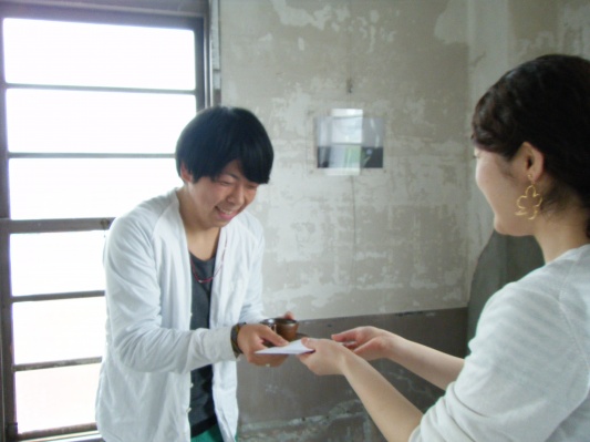 昨日、やっと授賞式に来てくれた3位の森下君。 「いや~うれしいです。」と言ってるが私には聞こえる。。 「ナンデ オレガ 一位じゃぁ ナイネン↗」  と。 まあ、仕方ない。これが現実だ、若者よ! (るみちゃんから100万ドルの笑顔で手渡してもらえただけでもラッキーなんだし) それに キミには まだまだこれから 輝かしい未来が果てしなく広がっているんだから ~☆