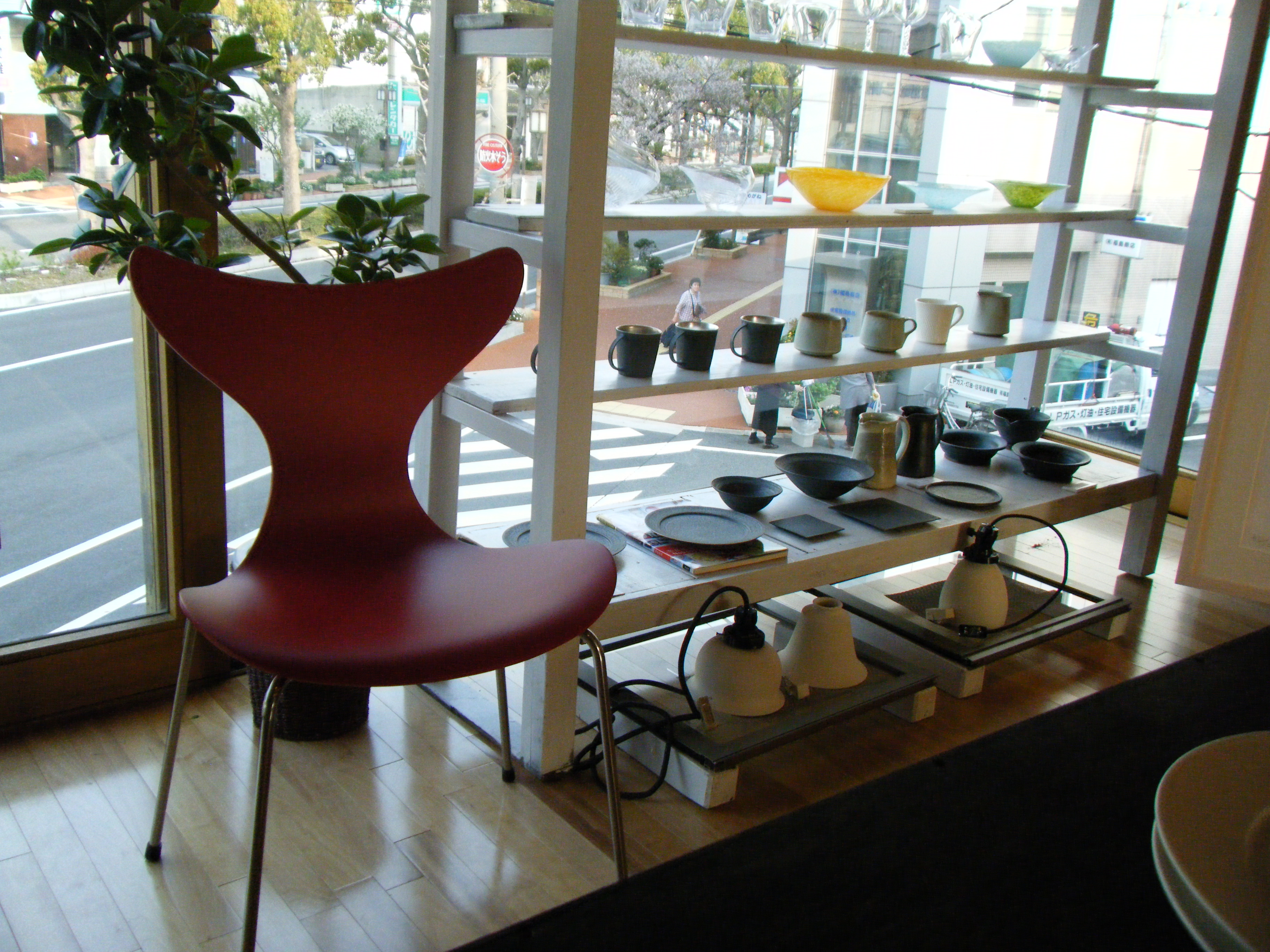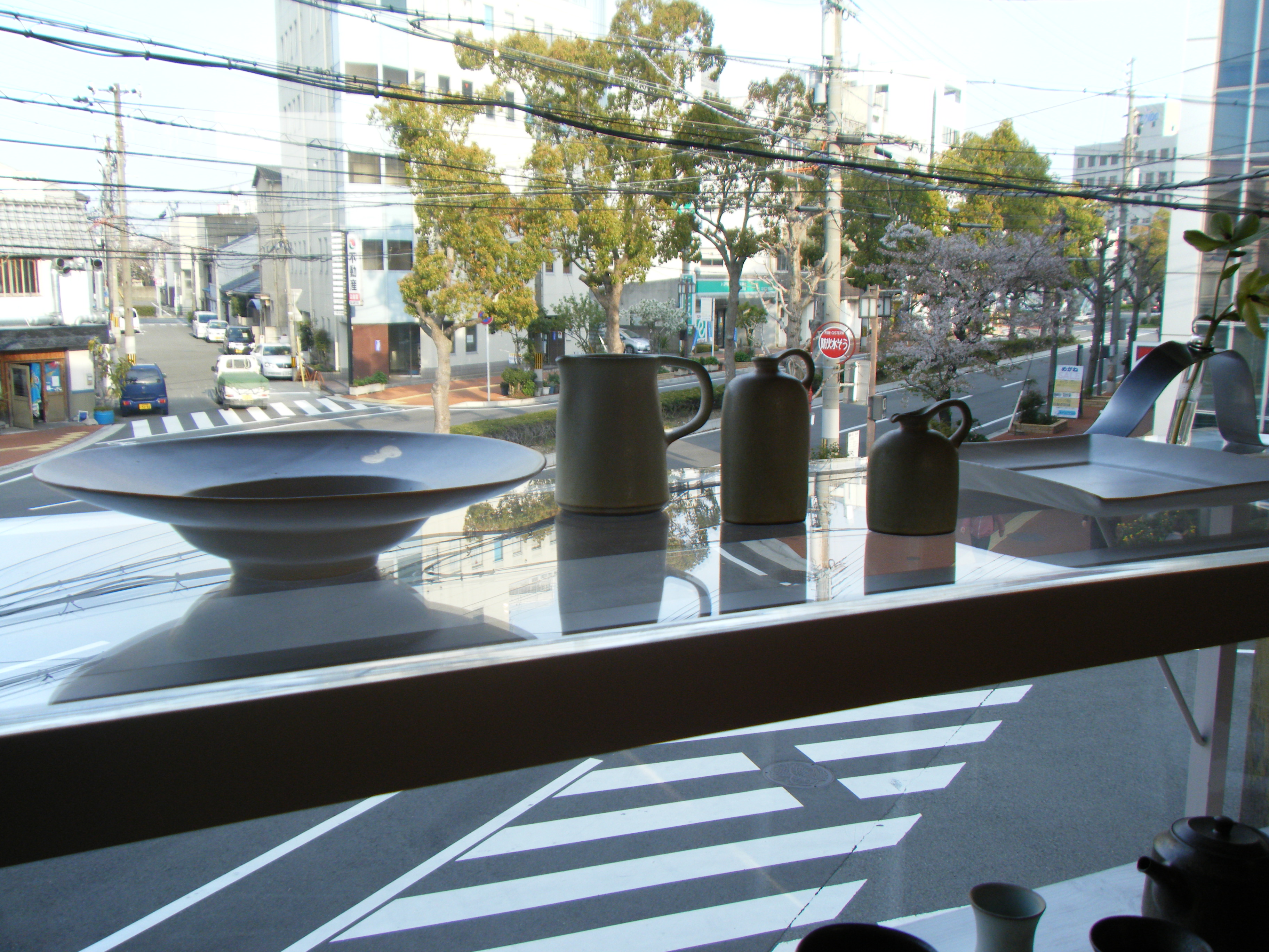 DSCF5869 2階の窓から行きかう車や横断歩道を渡る人たちを眺める物静かな陶器たち。 「僕たちがキミらを見ているんだから」とでも言いたげな。 DSCF5872