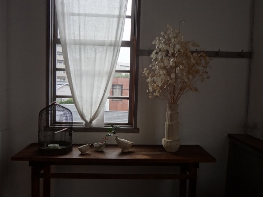 初日、少しだけ落ち着いた時間 サチコさんは自分の作品に囲まれてまるで胎児のように安心して読書している。 これからどんどん出来上がりの作品が増え、変化・成長・繁殖していきます。