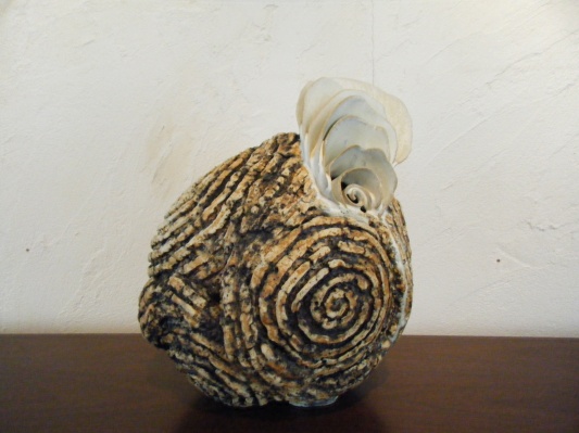 4つのカスタード シューをサントノーレのように仕立て、 キャラメルのホイップクリームもたっぷりと。 ラムレーズン、キャラメリゼしたくるみもちりばめています。 ココナッツクッキー、サクリスタン(長いパイの焼菓子)、チョコレートソースを添えて。 vivo recipiente (ビボ レシピエンテ) 日本語訳:「揚々と岳丸」 或は 「生きている器」 是非!