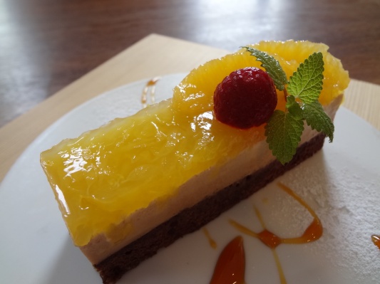 そのジュレに、カフェでお出ししている紅茶と同じリーフルさんの紅茶を使ったムースと、ヴァローナのカカオパウダーを使ったしっかり重めの生地と合わせました。