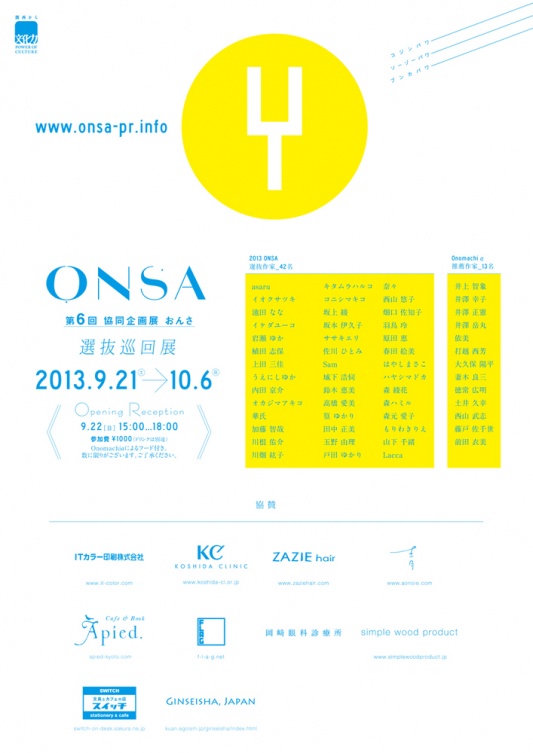 2013年 第6回目となる「おんさ展」では関西にある10か所のギャラリーと出版社が協力し、