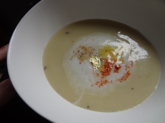 ビシソワーズにはふわふわに泡立てた豆乳とスパイス、そして金粉も! 野菜がきれいで、美味しそうに見えます! そんなお話をしていると 「僕は肉を食べるときもその倍以上の野菜を食べるんです」 十河さんはおっしゃいます。 やっぱり!
