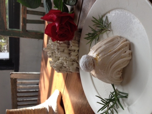 さて、昨日のマロンシャルマンとの違いはどこでしょう? ・・そうです、夕べのうちに大粒のブラン・ネージュが空から舞い降りてきました。 ちょこんと愛らしいのに、最後の一口までいろんな食感が楽しめるエリナのお菓子。 ”マロン・シャルマン” 紅茶と一緒にいかが?