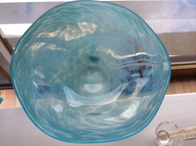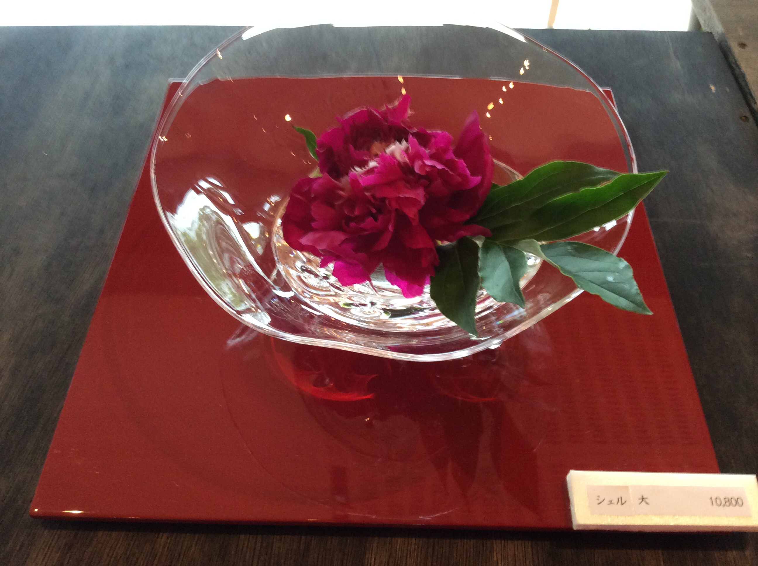 真紅の芍薬の大きいこと! でも、大きい「シェル」に浮かべたら ぜんぜん、態度が大きくなくなった..ワ。