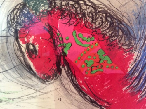 シャガールの絵の中の動物は 目が可愛い。 今日は この赤が無性に気になる。 シャガール 「太陽と赤い馬 」