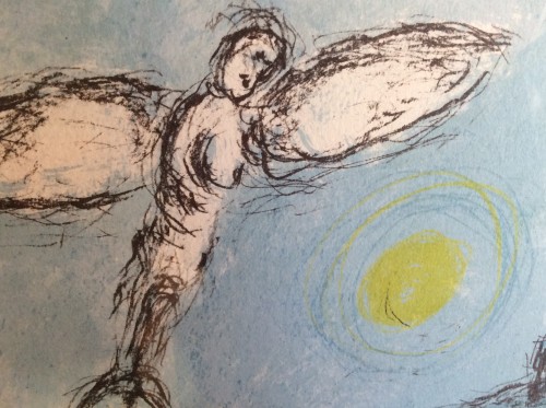 感性豊かな彼女は、シャガールブルーの中へ飛んで行き まあるいお月様を触っていた。 アキコさんと 初めて じっくり話せた。 この絵はそのチャンスをくれた。