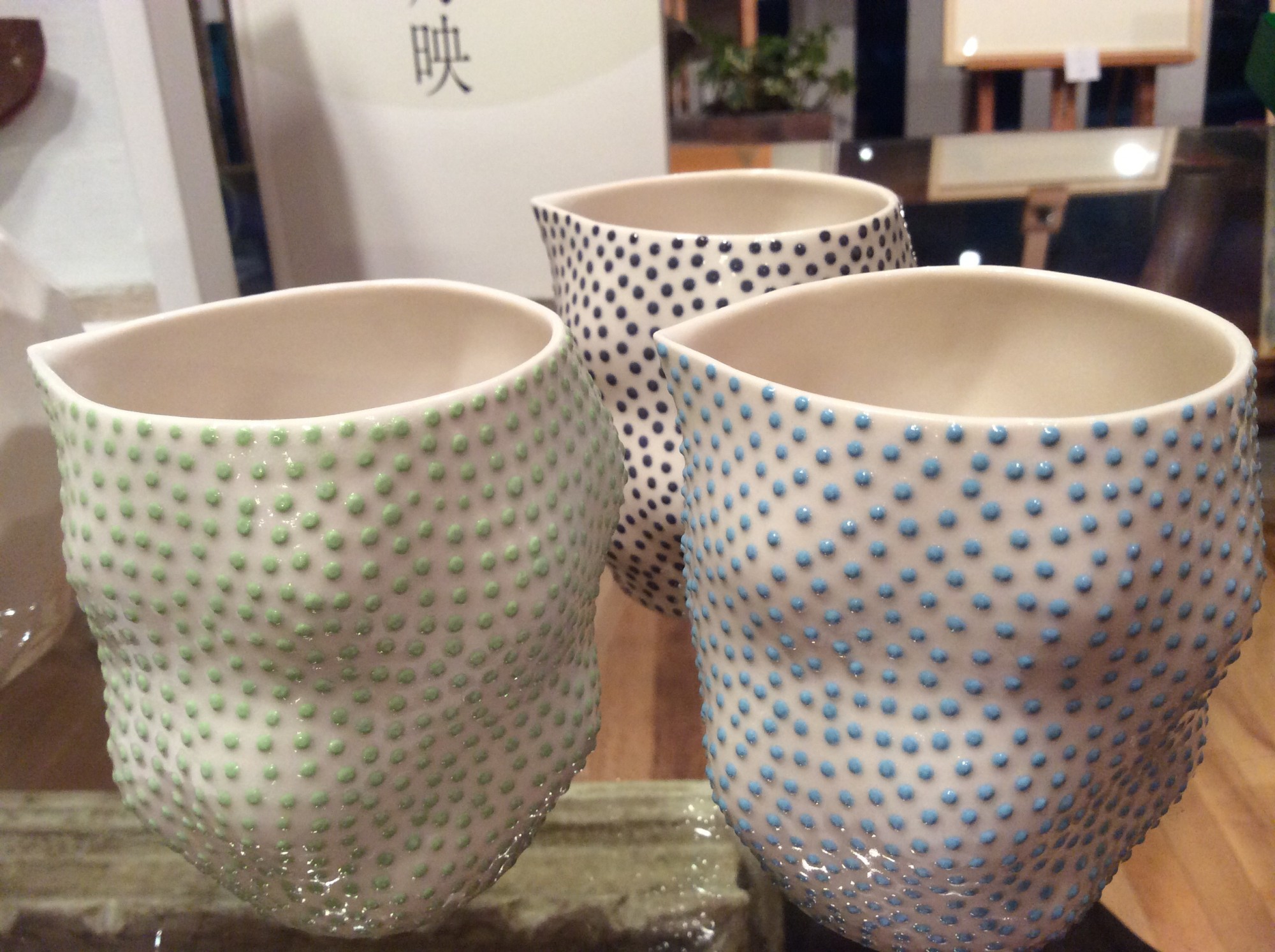 25歳の青年が イクコの片口を手にとって、聞く。 「カタクチって、どんなに使うんですか?」 たまに寄ってくれるこの青年が初めて興味深げに聞く。 素性を聞くと、今月末に和歌山を離れて一人暮らしで頑張るそうだ。 「どんな使い方をするかは新しい生活の中で自分で決めなさい」 そう、答えておいた。 自分の中にある力を信じて頑張るんだよ、 応援してるからね!